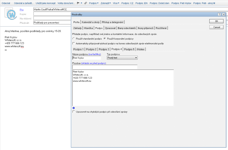 Tip: Many more options regarding e-mail signatures are offered by Corporate Signatures application.