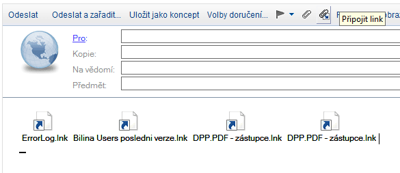 User has the possibility to insert a link (shortcut) to a shared file to the body of a message.